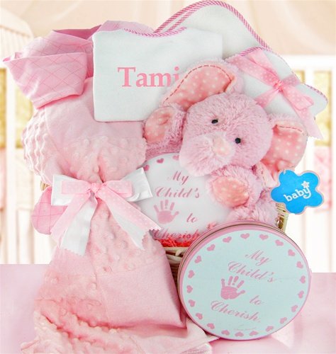 Minky Dots Personalized Baby Girl Gift Basket Feature